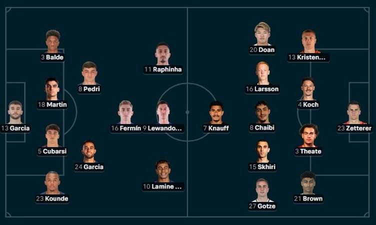 Barcelona pret Frankfurtin në shtëpi, teksa Flick i beson nga minuta e parë Raphinha-Lewandowski-Yamal. Ndeshje të tjera në orën 21:00 janë edhe Monaco – Galatasaray, PSV – Atletico Madrid, Royale Union – Marseille dhe Tottenham – Slavia Prague.
