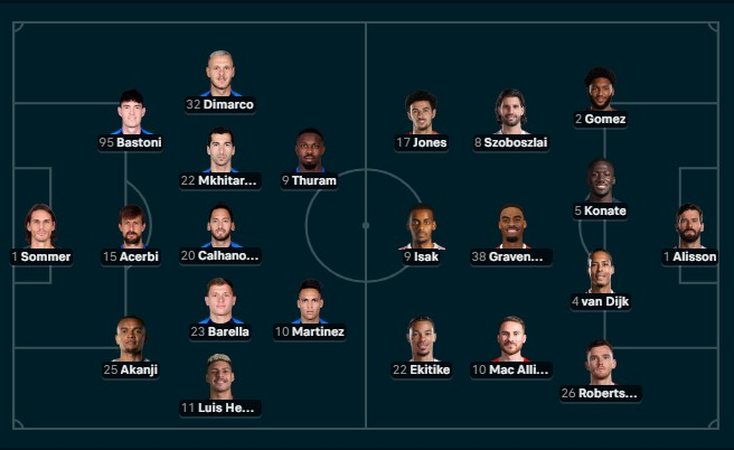 Trajneri i zikaltërve Cristian Chivu i ka besuar që nga fillimi në fazën ofensive dyshes Thuram-Martinez, ndërsa anglezët luajnë “all-in” me “tridhëmbëshin” Ekitike-Isak-Jones.