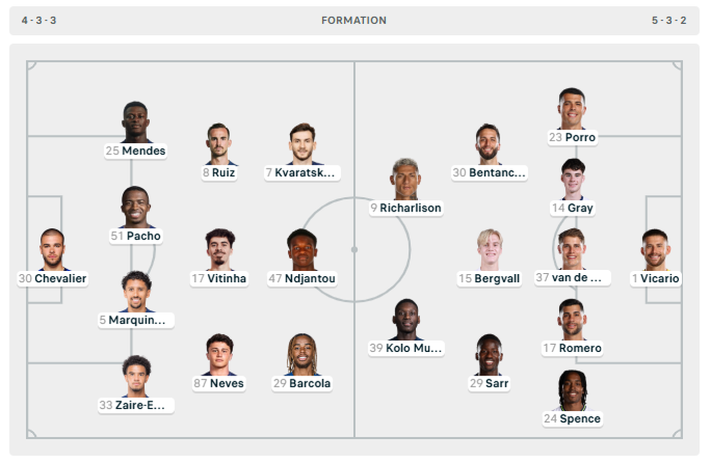 Më poshtë do të njiheni me formacionet zyrtare të 7 ndeshjeve të mësipërme.