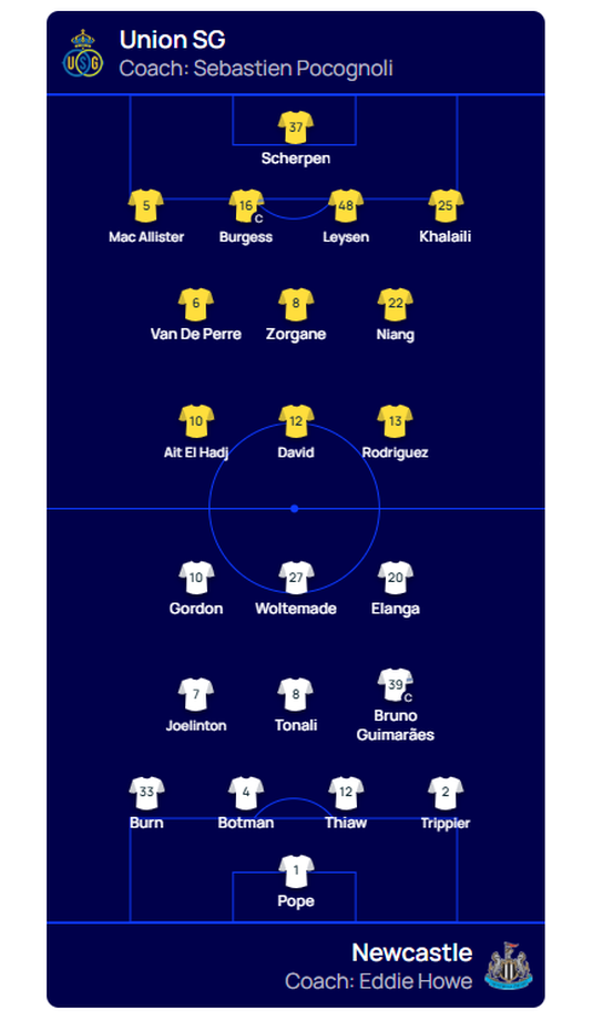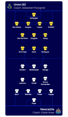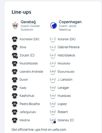 Tashmë trajnerët respektivë kanë vendousr për lojtarët që do të hedhin në fushë prej minutës së parë. Më poshtë do të njiheni me formacionet zyrtare të Qarabag – Copenhagen dhe Royale Union SG – Newcastle.