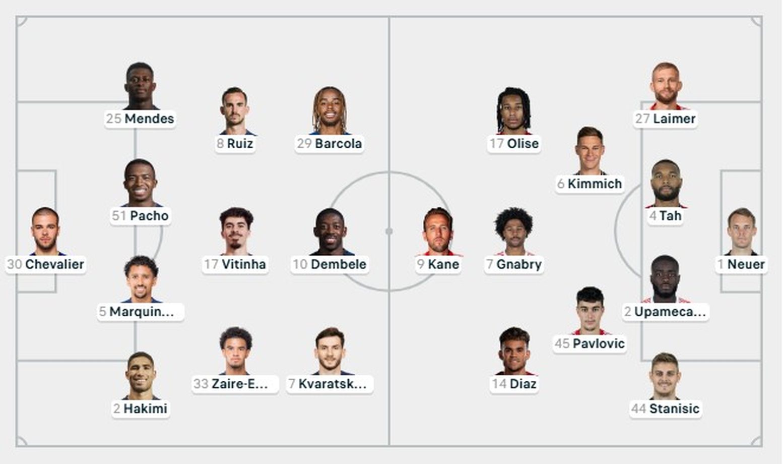 Kampionët në fuqi do luajnë përballë bavarezëve, e cila është e vështirë për të dhënë një parashikim të saktë. Trajneri Lusi Enrique nuk ka asnjë surprizë në rreshtim apo emra, e njëjta gjë ndodh edhe me Bayern e Kompany. Pritet një duel Dembele – Kane në sulm apo Vitinha – Kimmich në mesfushë.