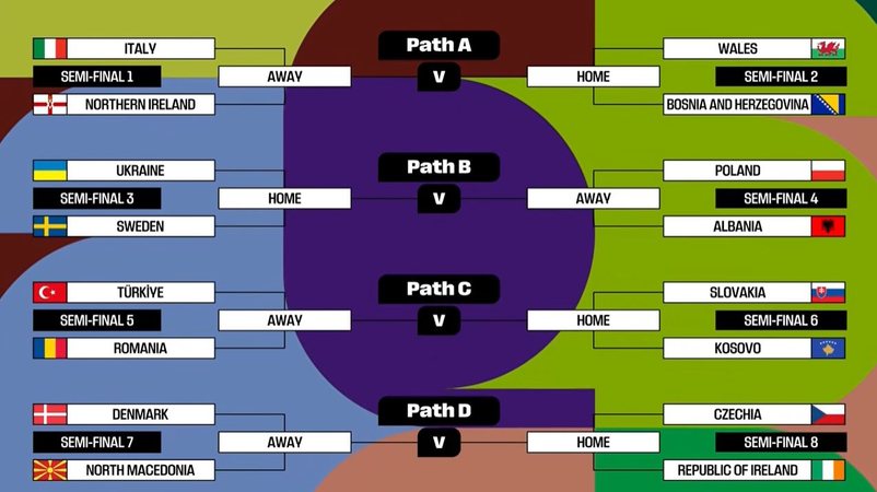Duelet e para të tyre do të luhen në transfertë më 26 mars. Ndërkohë nëse kuqezinjtë do të arrijnë të kalojnë polakët do të mund të përballen në finale me fituesin e çiftit Ukrainë – Suedi. Finalet do të luhet më 31 mars dhe ashtu si përballjen e parë edhe duelin e dytë do ta luajë në transfertë.