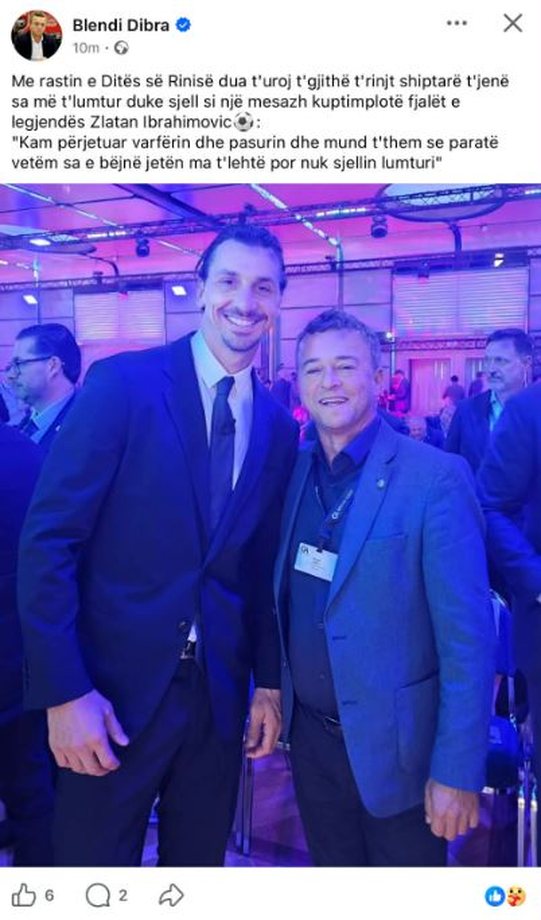 E në këtë ditë, zyrtari i Vllaznisë ka bërë një postim në rrjetet sociale. Blendi Dibra ka uruar të gjithë të rinjtë për 8 Dhjetorin, ndërsa ka zgjedhur disa nga fjalët e legjendës, Zlatan Ibrahimovic.