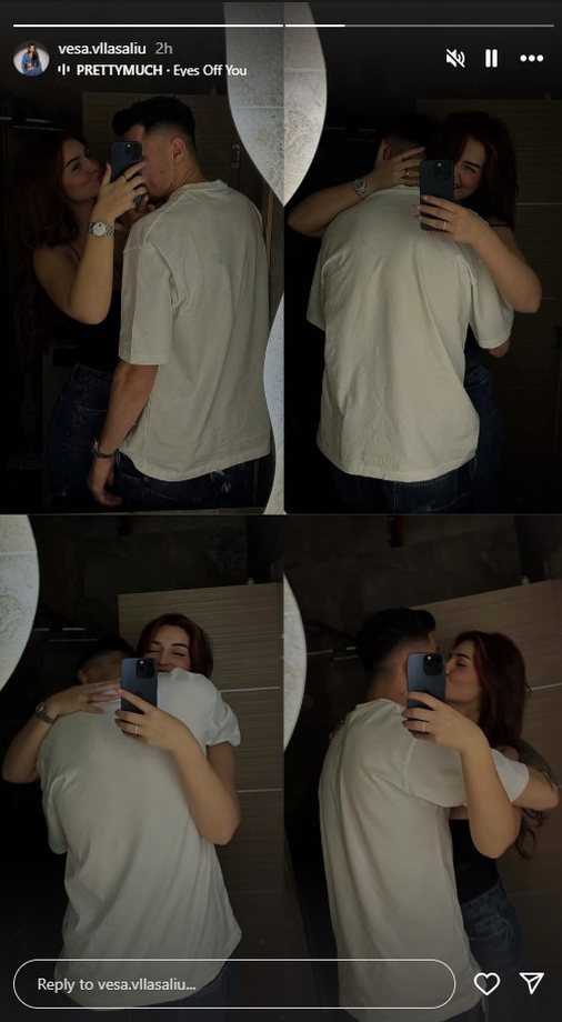 Në fotot e publikuara, çifti shfaqet duke shkëmbyer puthje, ndërsa në një tjetër postim Vesa ka treguar një buqetë me trëndafila të kuq, dhuratë nga Daku me rastin e përvjetorit të lidhjes së tyre. “Gëzuar përvjetorin”, ka shkruar ajo në mbishkrimin që shoqëronte foton romantike.