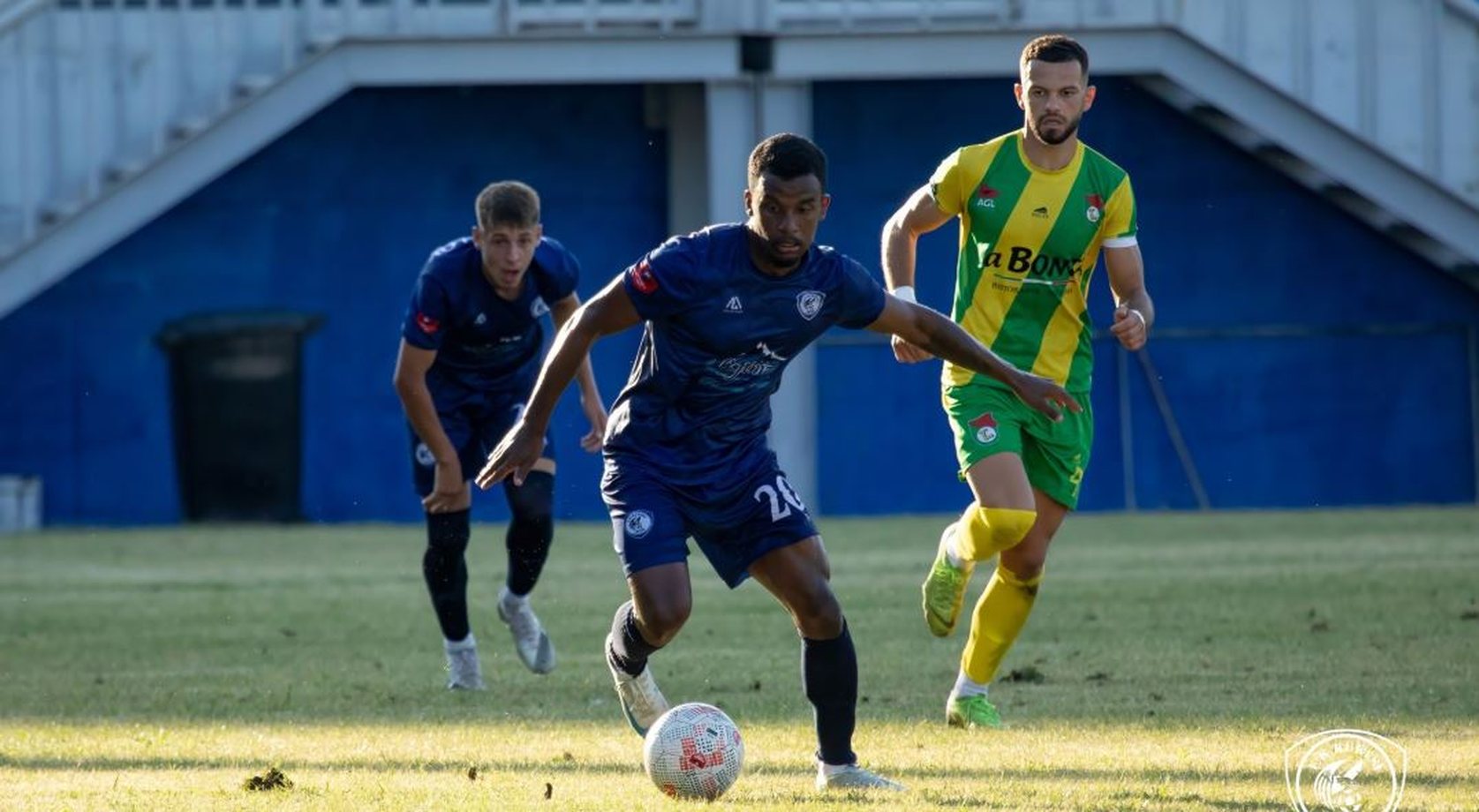 Para mbrojtjes qëndrojnë Suleiman Danladi (Pogradeci) dhe Paulo Estrela (Skënderbeu).