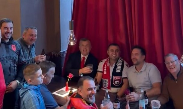 I shoqëruar nga bashkëshortja e tij, Altin Dumani është filmuar teksa ndjek nga afër lojën e djemve tanë kuqezinj të cilët janë duke “luftuar” me yjet e Anglisë.