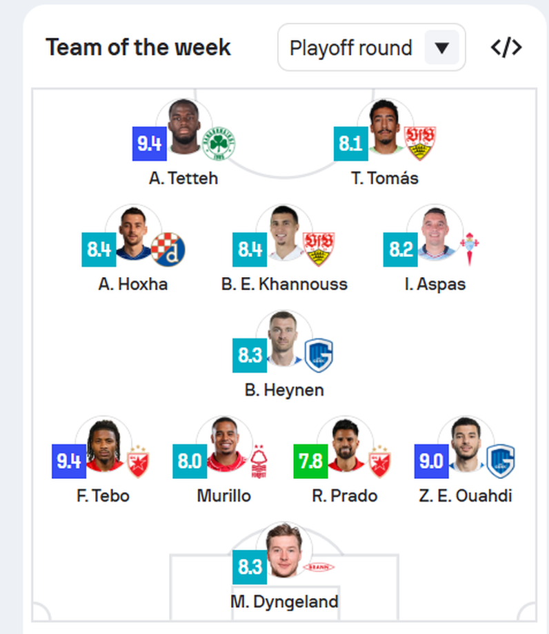 Kështu, “SofaScore” e ka shpërblyer shqiptarin, duke i bërë një vend në 11-shen më të mirë të ndeshjeve të para të “play-off” të 1/16-ave. Ai është bashkuar aty me legjendën spanjolle Iago Aspas.