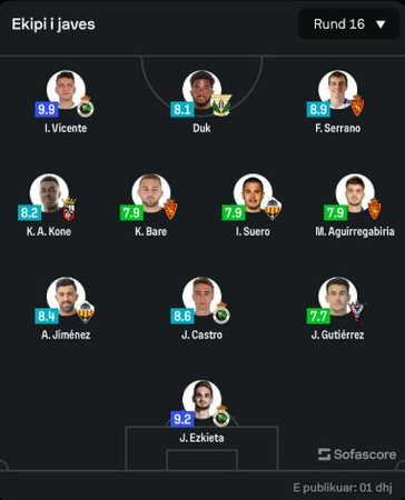 Fieraku falë paraqitjes së bërë është zgjedhur në formacionin më të mirë të javës së 16-të të La Liga 2. Madje nga “Soffascore” është vlerësuar me notën 7.9.