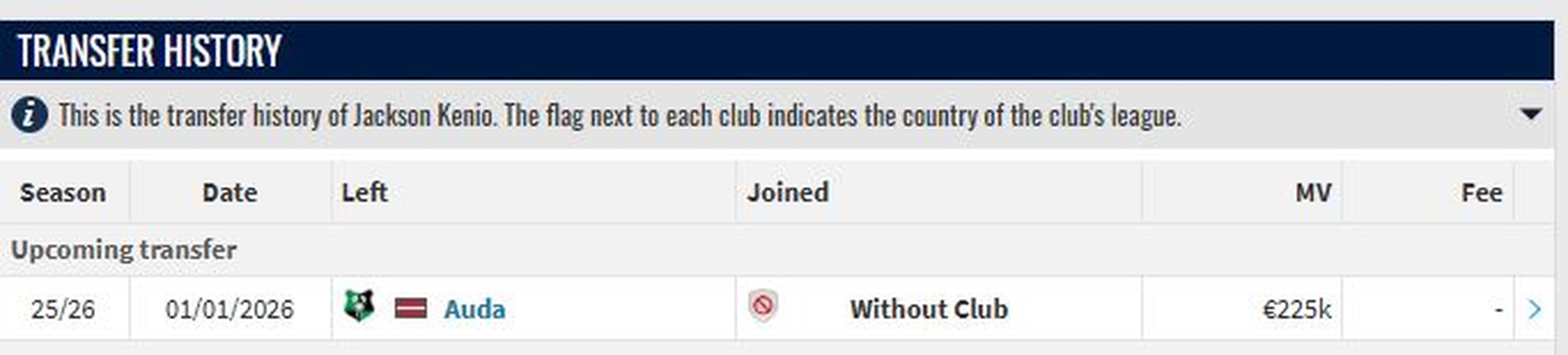 Diçka të tillë e ka bërë të ditur vetë klubi letonez, me palët që nuk do të bashkëpunojnë më mes tyre. Siç duket 26-vjeçari nuk ka arritur të bindë letonezët dhe ne këto kushte rrugët mes tyre ndahen në këtë periudhë të kampionatit dhe del i lirë saktësisht më 1 janar 2026.