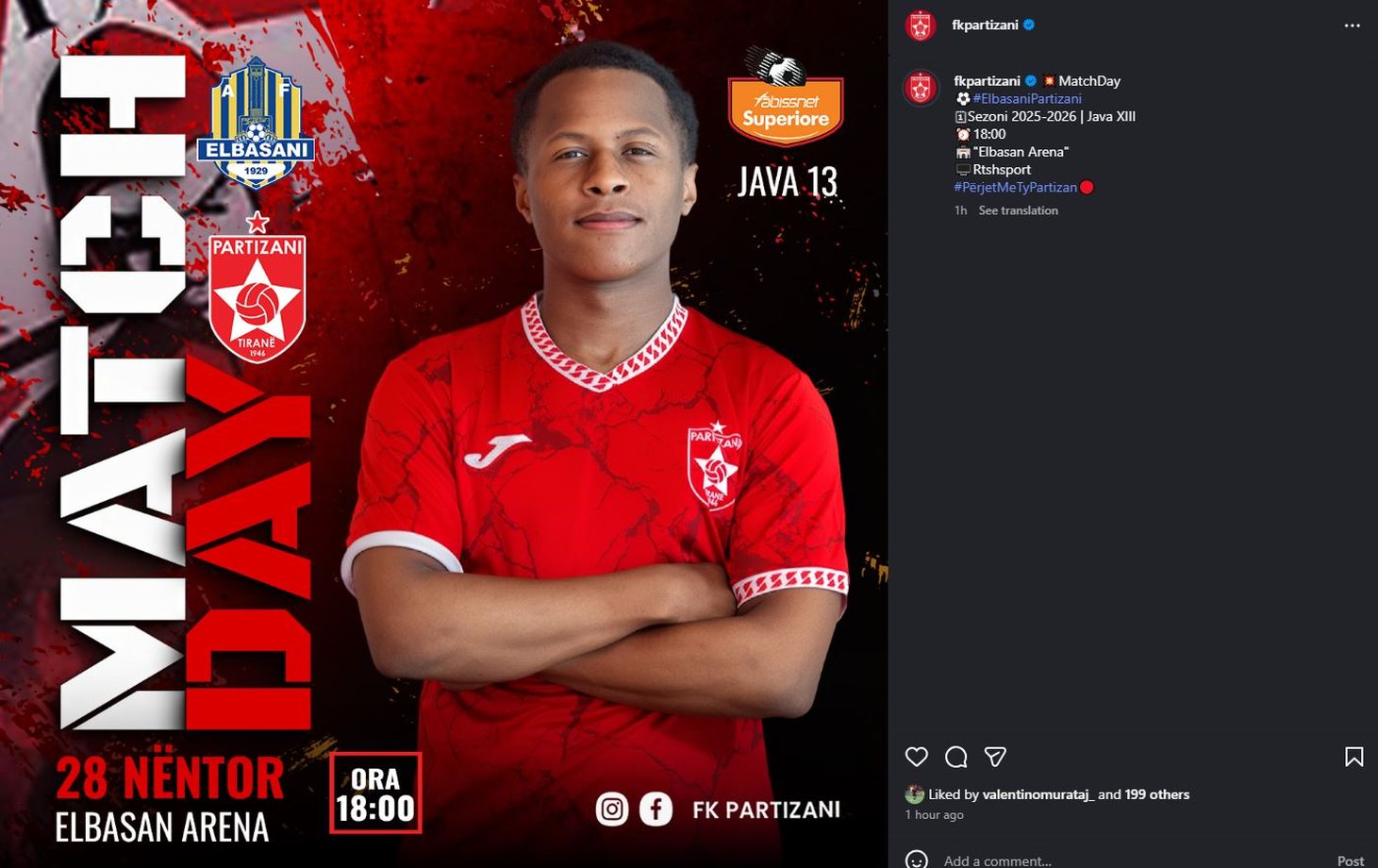 Në një postim të bërë nga klubi kryeqytetas mbi axhendën e ndeshjes së sotme me Elbasanin, ish-lojtari i kuq i ka bërë LIKE. Vlen të theksohet se aktualisht është një titullar fiks te skuadra e Flamurtarit, me këto të fundit që nuk po kalojnë një moment të mirë në Superiore, teksa ndodhen në vendin e 9-tëq pas 12 javësh.