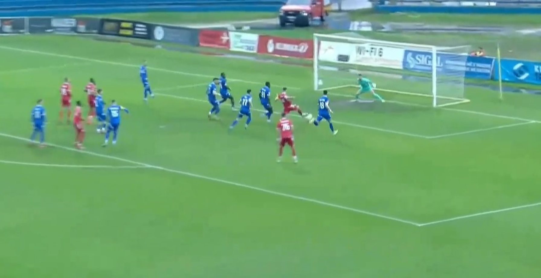 44' - Ozois shpëton nga goli i "sigurtë", pas goditjes me kokë nga Kotobelli.