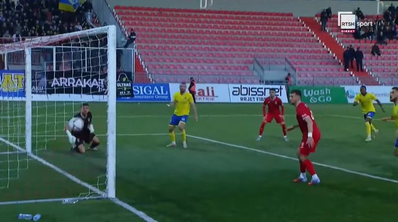 6' - Elbasani humbet topin në zonë, goditja e Skukës ndalet mrekullisht nga Janacek.