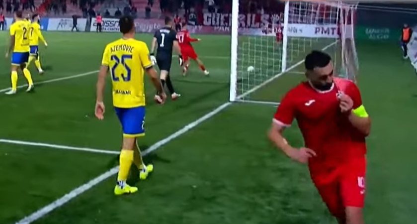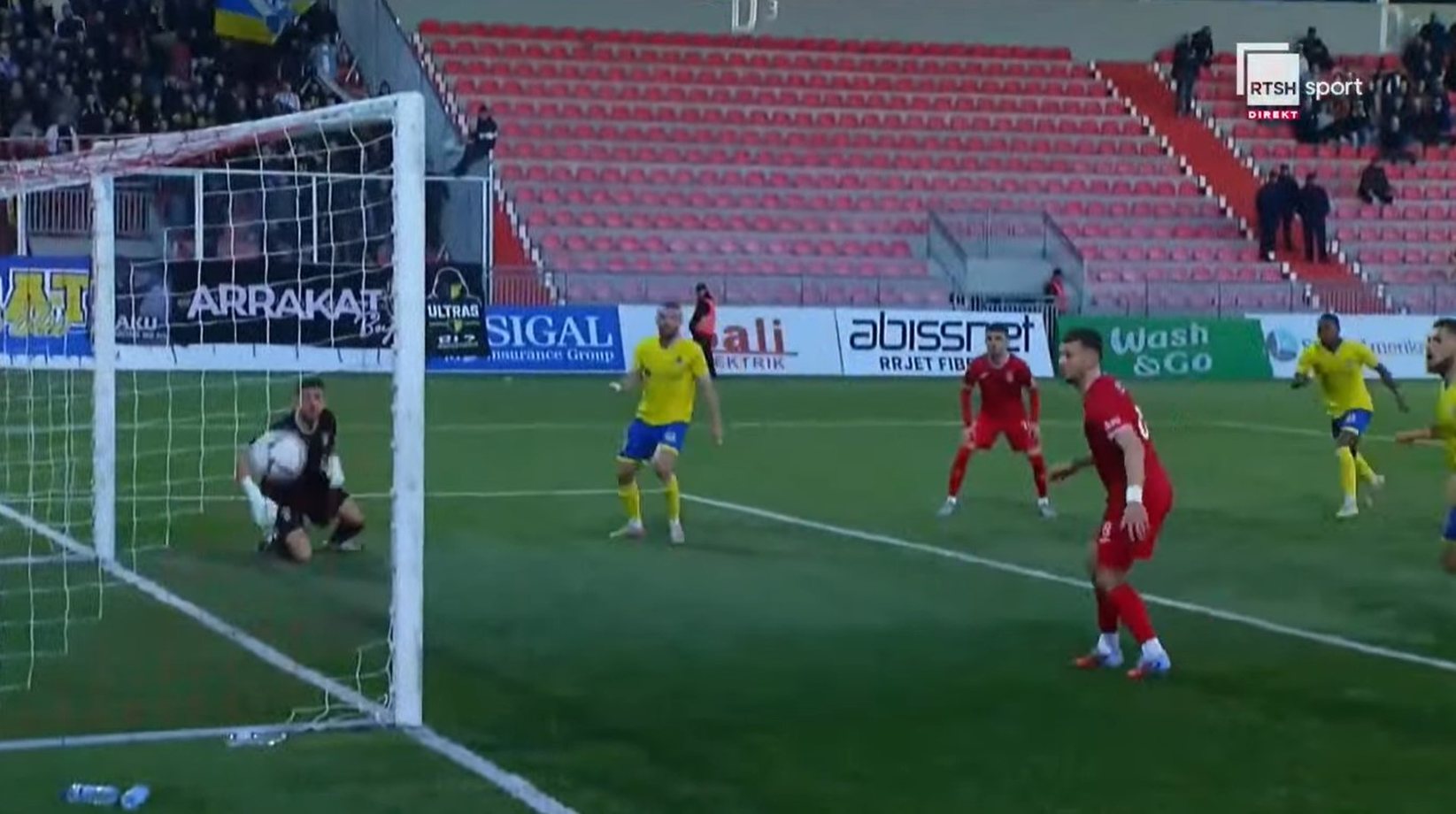 57'- Skuka merr "zvarr" mbrojtjen e Elbasanit, por pret portieri Totoshi.