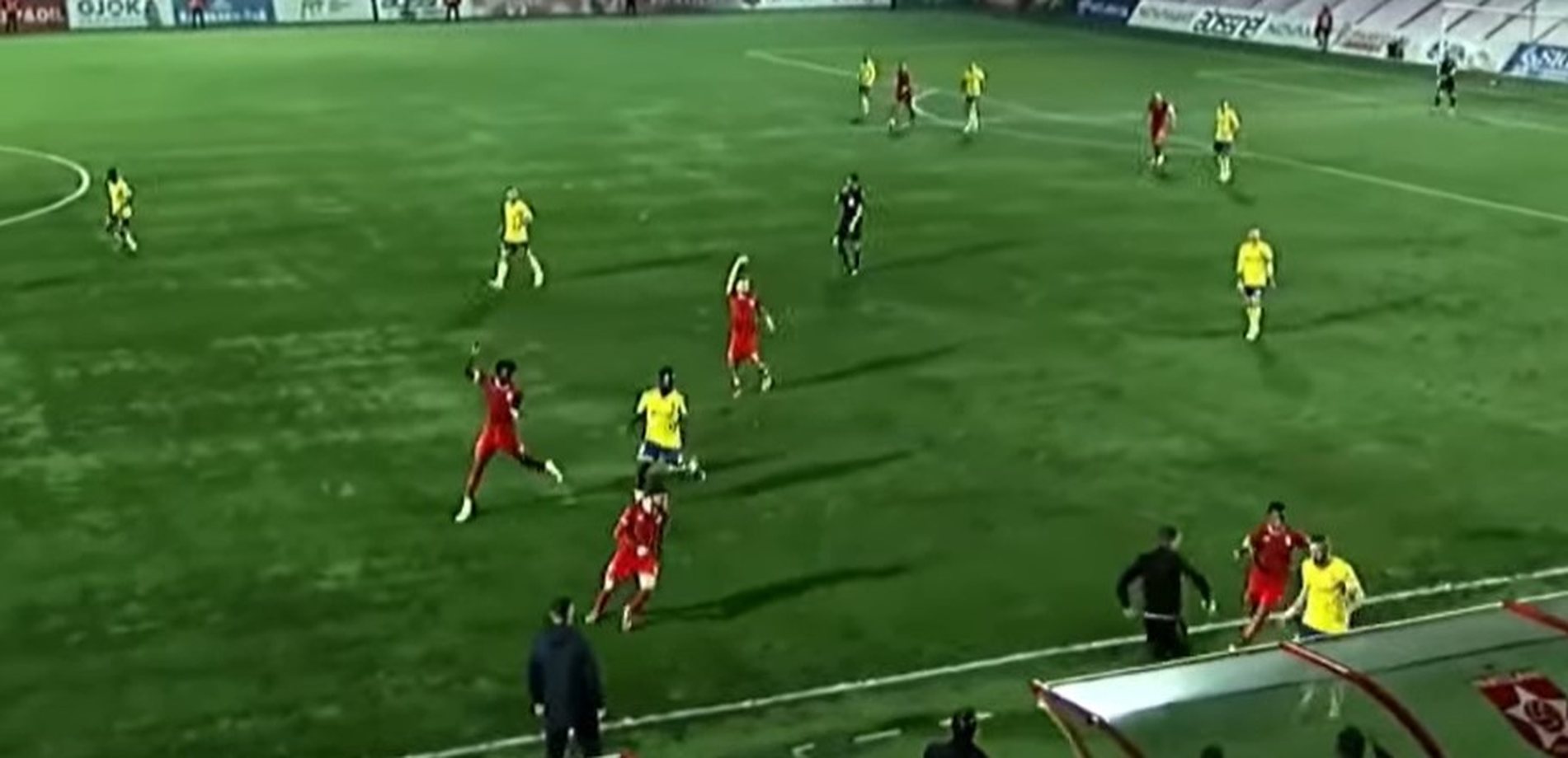 26' - Janacek e "tepron" në ndërhyrje kundër Human, karton i kuq.