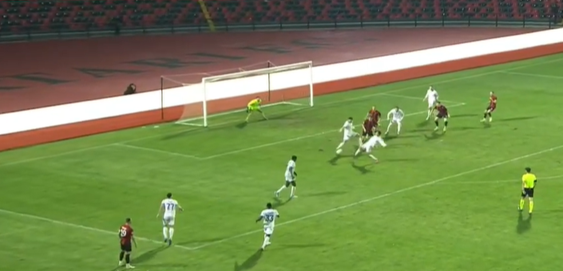 36' - Ndërhyrje e rrezikshme nga Veiga kundër Fadairo, vetëm karton i verdhë.