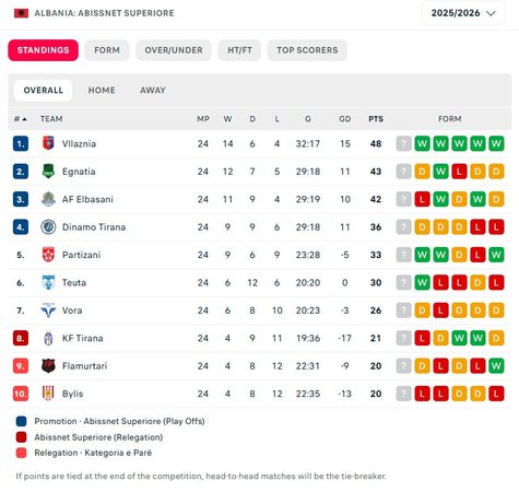 Në përballjen direkte për vendin e parë, Vllaznia mposhti në frymën e fundit 2-1 AF Elbasanin dhe regjistroi fitoren e shtatë radhazi në kampionat. Me 48 pikë, shkodranët kryesojnë renditjen dhe tashmë janë 5 pikë larg vendit të dytë që mbahet nga Egnatia, duke forcuar pozitat në krye.