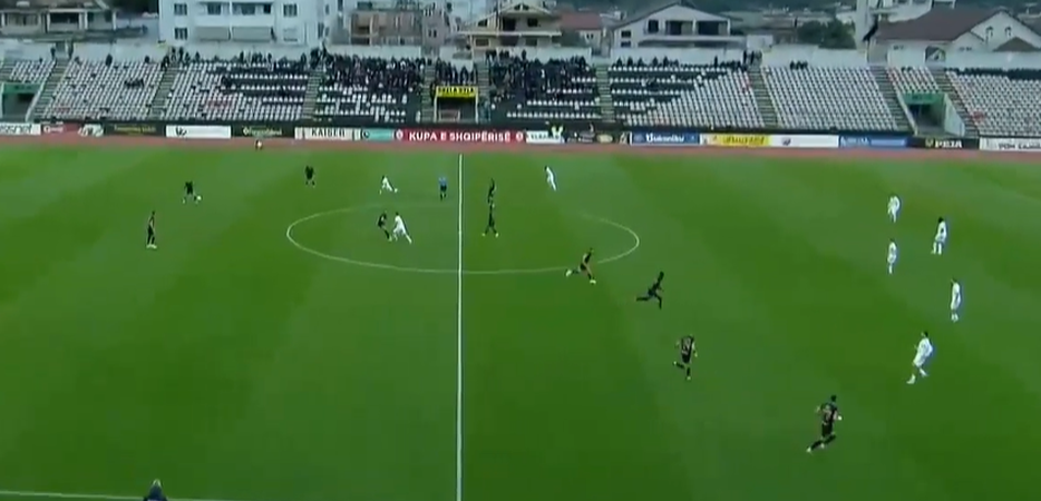 36' - Human bën gjithçka mirë, por portieri i Elbasanit Janacek pret "mrekullisht".