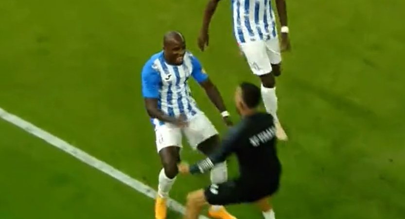 32' Portieri i Tiranës, Tafas ndëshkohet me karton të verdhë për protesta.